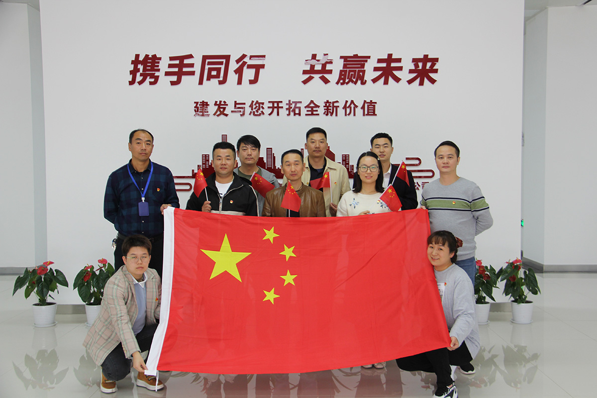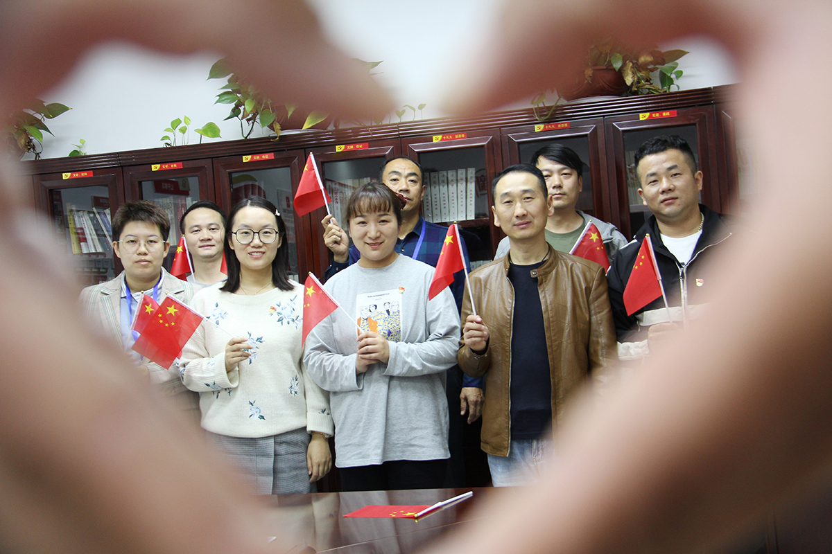 黨員們或高高擎起鮮艷的五星紅旗,表達(dá)對(duì)祖國母親的無限崇敬,或揮舞鮮艷的手執(zhí)紅旗頌揚(yáng)祖國的繁榮富強(qiáng),或激動(dòng)地與五星國旗“親密接觸”,表達(dá)對(duì)親愛祖國的無限熱愛......整個(gè)合影過程中,鮮艷的五星紅旗在秋風(fēng)中飄揚(yáng),幸福生活的喜悅在大家臉上洋溢,祝愿祖國繁榮富強(qiáng)的話語在笑聲中傳遞。