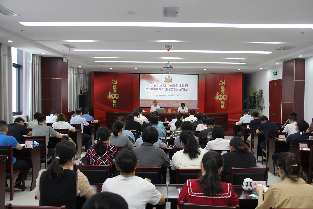 為持續(xù)深化全面從嚴治黨向縱深推進,切實增強黨員干部紀律意識和規(guī)矩意識,為高質量轉型發(fā)展提供堅強政治保障和組織保障。7月23日上午,公司黨委邀請市紀委常務副書記、市監(jiān)委副主任姜華作黨風廉政建設教育專題講座。黨委副書記、副董事長、總經理宋道河主持會議,班子成員,全體黨員干部職工和二級機構負責人參加會議。