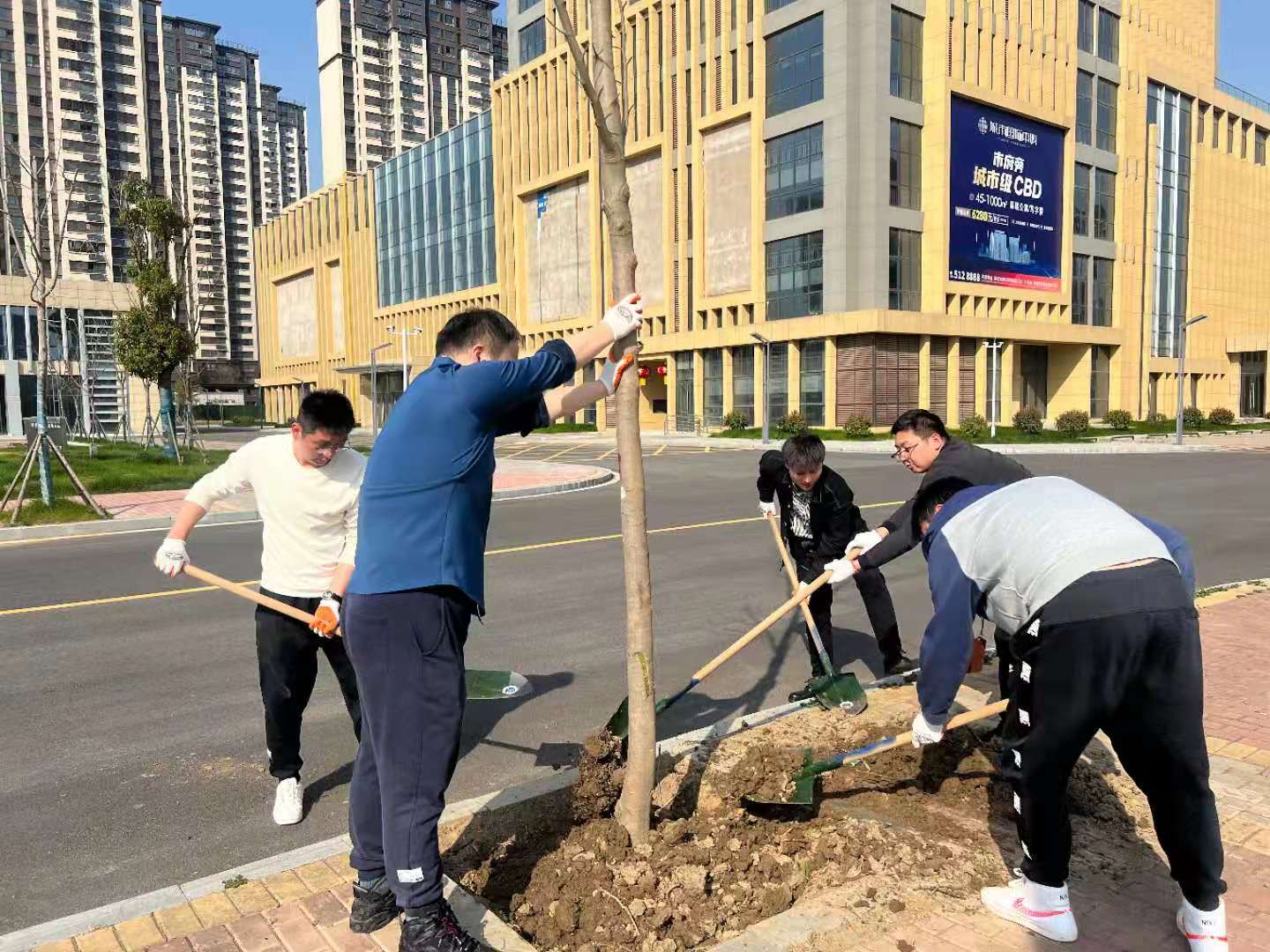 植樹節(jié)期間,集團公司組織集團干部職工開展樹木種植及養(yǎng)護活動。參加人員滿懷貢獻一份力量,共建綠水青山的活動熱情,對樹木進行悉心養(yǎng)護。大家分工合作,松土、扶正、固定、澆水,有條不紊、配合默契,活動現(xiàn)場呈現(xiàn)出一片熱火朝天的勞動景象。