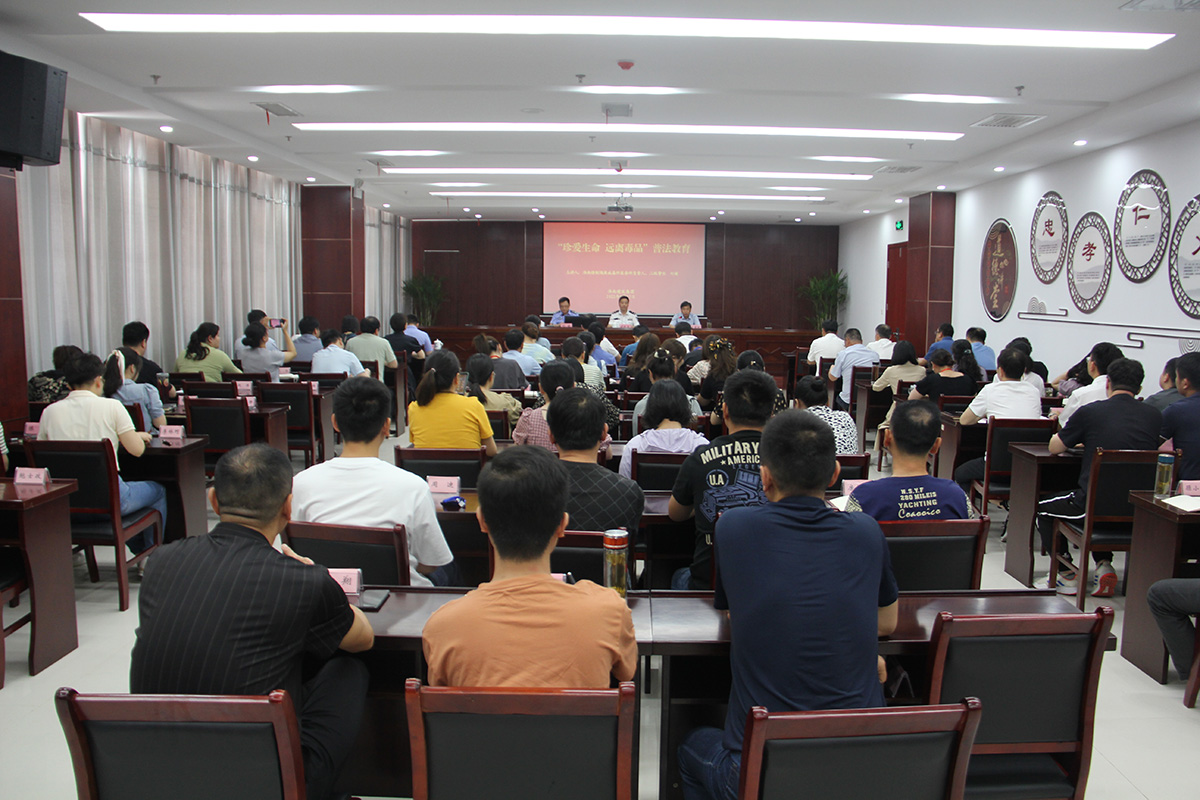 為不斷深化國(guó)有企業(yè)法治建設(shè),切實(shí)增強(qiáng)干部職工學(xué)法、知法、遵法、用法的法治意識(shí),在“6.26國(guó)際禁毒日”到來(lái)之際,6月17日,集團(tuán)公司組織開(kāi)展了“珍愛(ài)生命 遠(yuǎn)離毒品”專(zhuān)題普法教育,邀請(qǐng)了市強(qiáng)制隔離戒毒所黨委委員、副所長(zhǎng)、二級(jí)高級(jí)警長(zhǎng)胡曉品,醫(yī)務(wù)所負(fù)責(zé)人、二級(jí)警長(zhǎng)劉健,辦公室副主任、二級(jí)警長(zhǎng)李昌宏進(jìn)行指導(dǎo)授課。黨委書(shū)記、董事長(zhǎng)宋道河主持會(huì)議,領(lǐng)導(dǎo)班子成員、全體干部職工參加培訓(xùn)。
