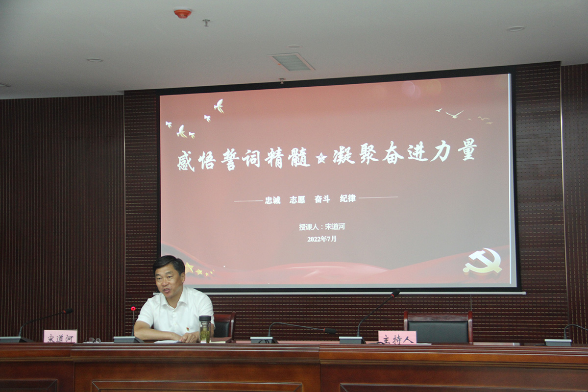 大會(huì)首先觀看了黨史學(xué)習(xí)教育片《精神的追尋--偉大建黨精神》,深刻理解中國共產(chǎn)黨的精神之源,從中汲取精神力量,牢記初心使命,敢于攻堅(jiān)克難,勇于擔(dān)當(dāng)使命,用實(shí)際行動(dòng)把偉大建黨精神繼承下去、發(fā)揚(yáng)光大。黨委書記、董事長宋道河同志以入黨誓詞為主題,圍繞“忠誠、志愿、奮斗、紀(jì)律”四個(gè)關(guān)鍵詞,從四個(gè)方面與大家交流感悟誓詞精髓,為全體人員上了一堂深刻的黨課,號(hào)召大家進(jìn)一步凝聚奮進(jìn)力量,努力在新時(shí)代中,敢擔(dān)當(dāng)有作為,以實(shí)際行動(dòng)迎接黨的二十大勝利召開。
