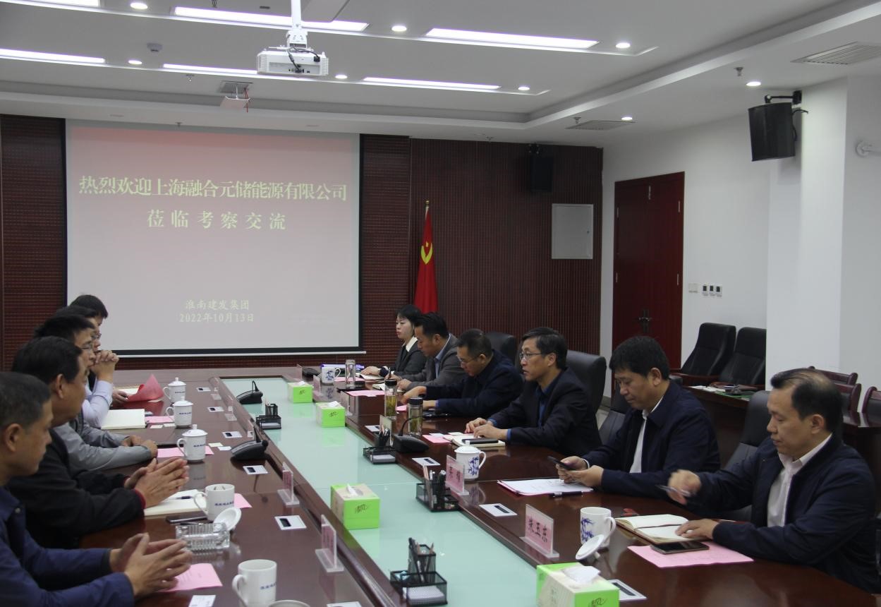 10月13日,上海融合元儲能源有限公司副總經(jīng)理夏雨,上海融合元儲能源有限公司北京公司副總經(jīng)理汪斌一行到訪淮南建發(fā)集團(tuán),雙方就淮南市西部采煤沉陷區(qū)綜合治理項(xiàng)目、儲能電站項(xiàng)目、光伏發(fā)電項(xiàng)目開發(fā)與合作等方面進(jìn)行了深入交流。