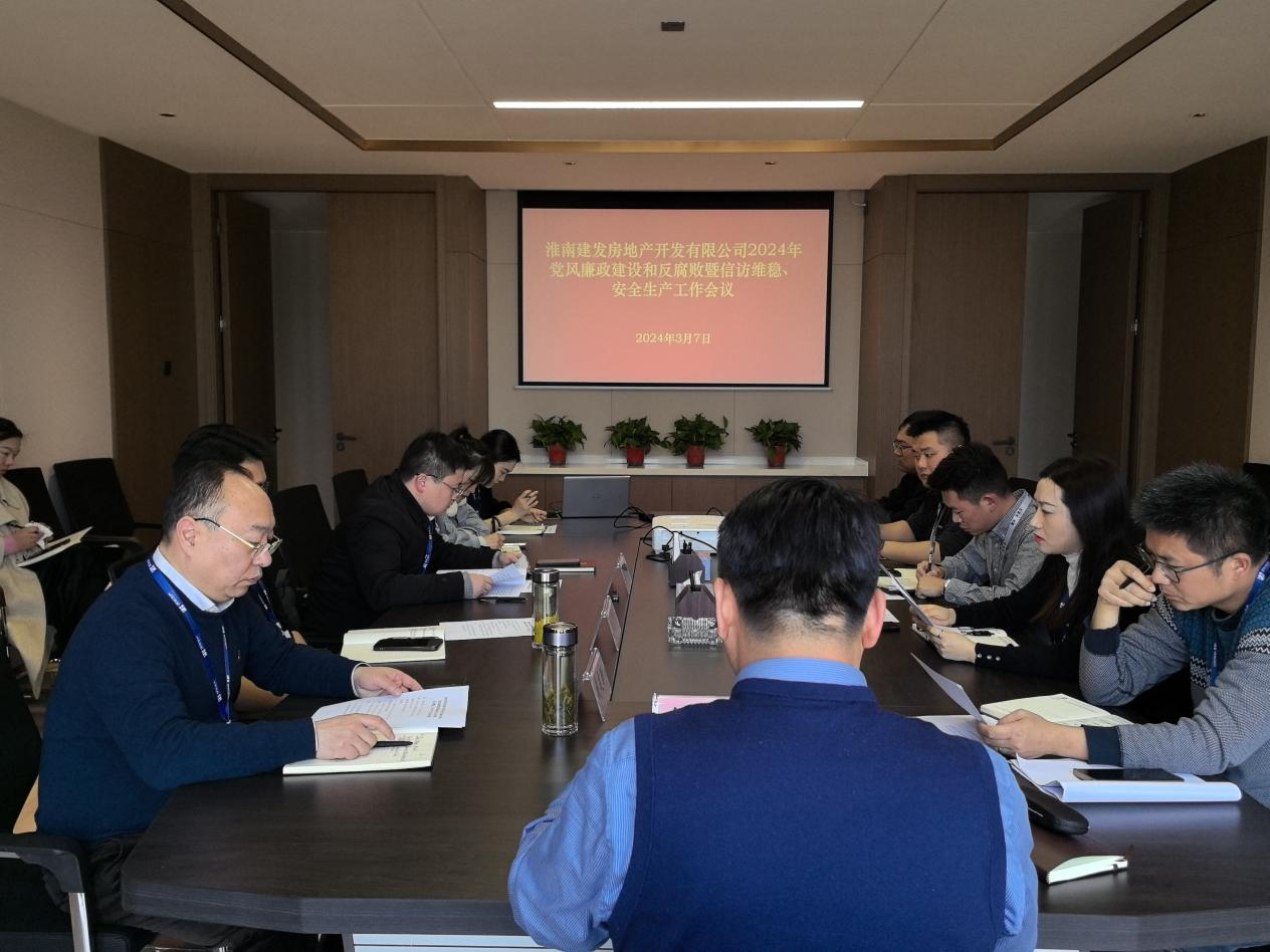 為貫徹落實(shí)集團(tuán)公司有關(guān)工作部署和文件精神,助力公司健康可持續(xù)發(fā)展,3月7日下午,淮南建發(fā)房地產(chǎn)開(kāi)發(fā)有限公司在如意庭營(yíng)銷(xiāo)中心會(huì)議室召開(kāi)2024年黨風(fēng)廉政建設(shè)和反腐敗暨信訪(fǎng)維穩(wěn)、安全生產(chǎn)工作會(huì)議,公司董事長(zhǎng)兼總經(jīng)理侯立新主持,全體員工參加。